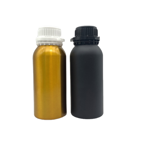 ขวดอลูมิเนียมสีเงินมันวาวขนาด50มล. 100มล. 200มล. 250มล. 500มล. 1000มล. พร้อมฝาปิดที่ปิดขวดสำหรับน้ำมันหอมระเหย