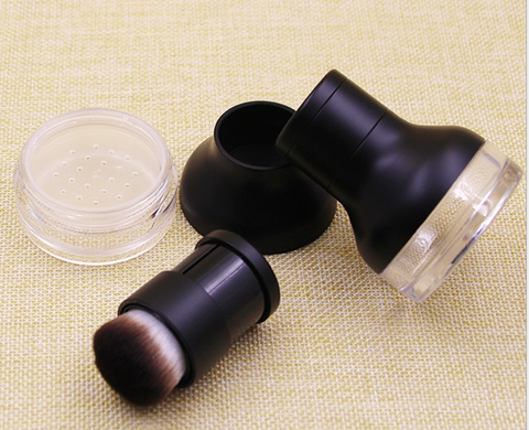 Cipria in polvere bottiglia di imballaggio 10g nero di plastica rotondo di trucco vuoto contenitore della polvere sciolto con la spazzola
